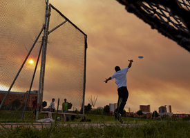 Smoke from the fire in Carpenter Canyon in the Spring Mountains helps to create a beautiful sunset over the Las Vegas Valley and the Thomas and Mack Center July 2, 2013 at the University of Nevada, Las Vegas: digital photographs