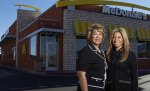 Tina and Jennifer Lewis outside one of the family's McDonald's locations for an Academic Corporate Council (ACC) ad on September 24, 2013: digital photographs